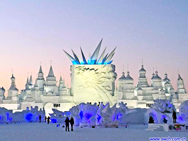 作品固然令人驚嘆,讓我們同樣不可忽視的是美輪美奐的自然美景。場(chǎng)地的一邊是成排的冰雕松樹(shù),厚厚的被冰雪覆蓋的松葉與松樹(shù)尖針般的樹(shù)尖在各種大氣橫生的冰雕中顯得分外可愛(ài)、清秀。